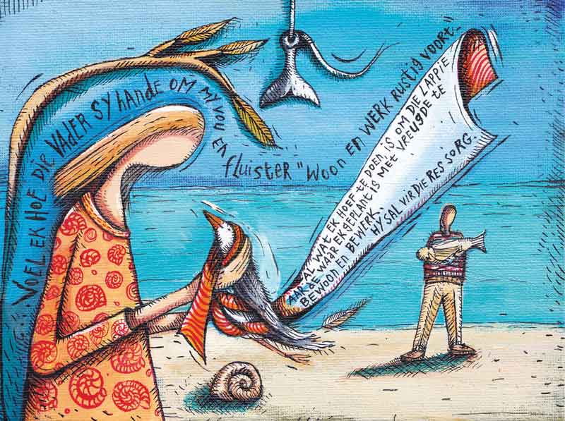 Die stemme sterwe weg en stilte kom oor die strand. Net die see prewel soos ‘n ou dominee wat die seën uitspreek. En die engeltjie is nie meer tussen die kinders nie.