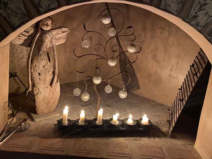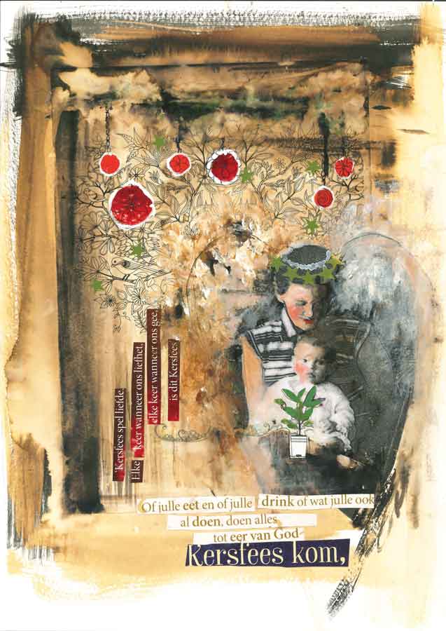 Toe hy orent kom, voel hy wonderlik sterk en sy skouers is los en lig asof daar geen gewig op hulle gerus het nie. Hy steek sy hand uit om die kind na die vuur te lei. Maar dis nie ‘n kind wat in die hemelse gloed van die kamer staan nie. Dis ‘n Man. Sy gesig blink.